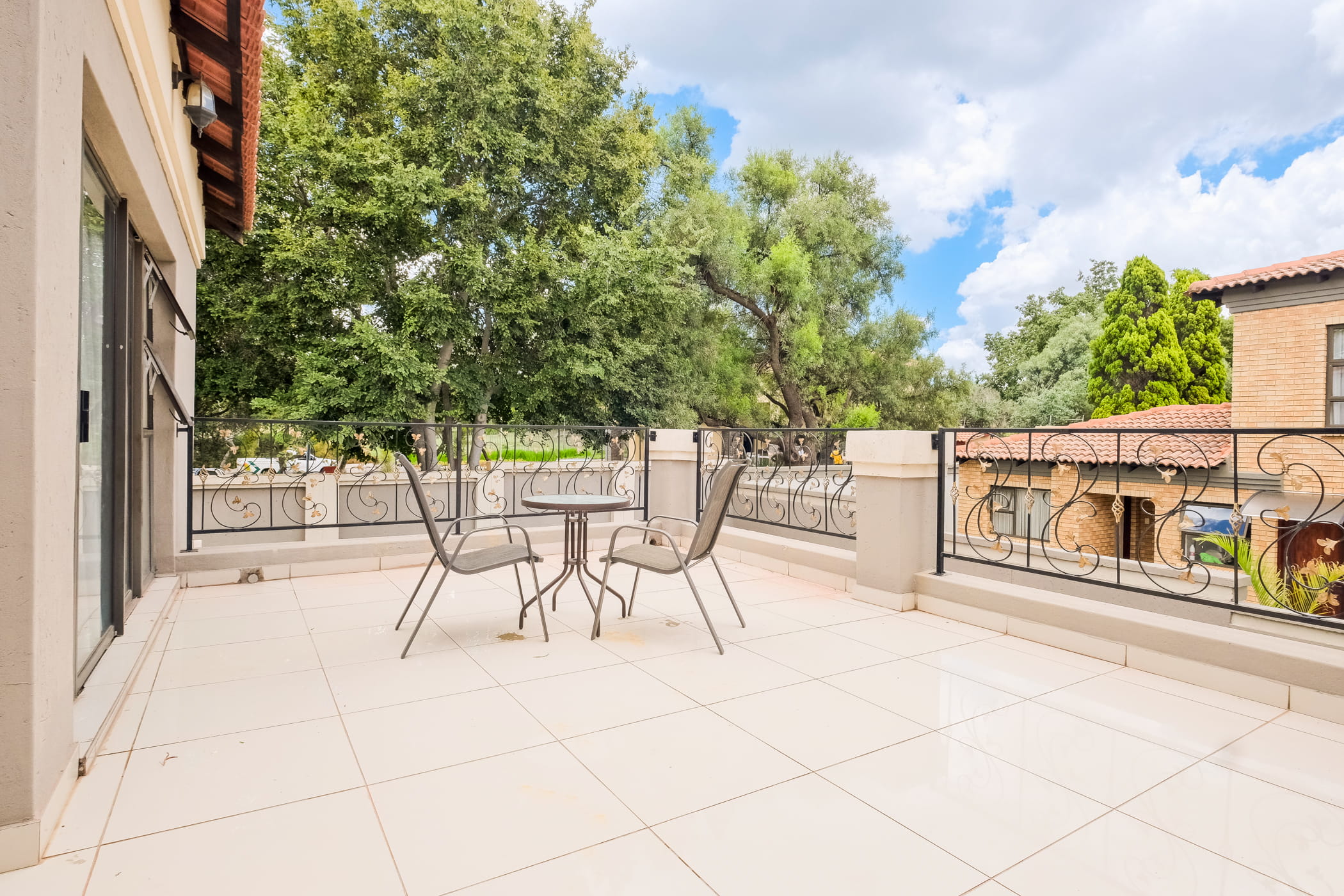 The home features 2 bedrooms and a bathroom on the ground floor, while the upper level offers 3 generously sized en-suite bedrooms, ensuring privacy and convenience for the entire family. Large, expansive patios on both levels enhance the elevated and sophisticated feel of the home and provide ideal spaces for entertaining or relaxation.